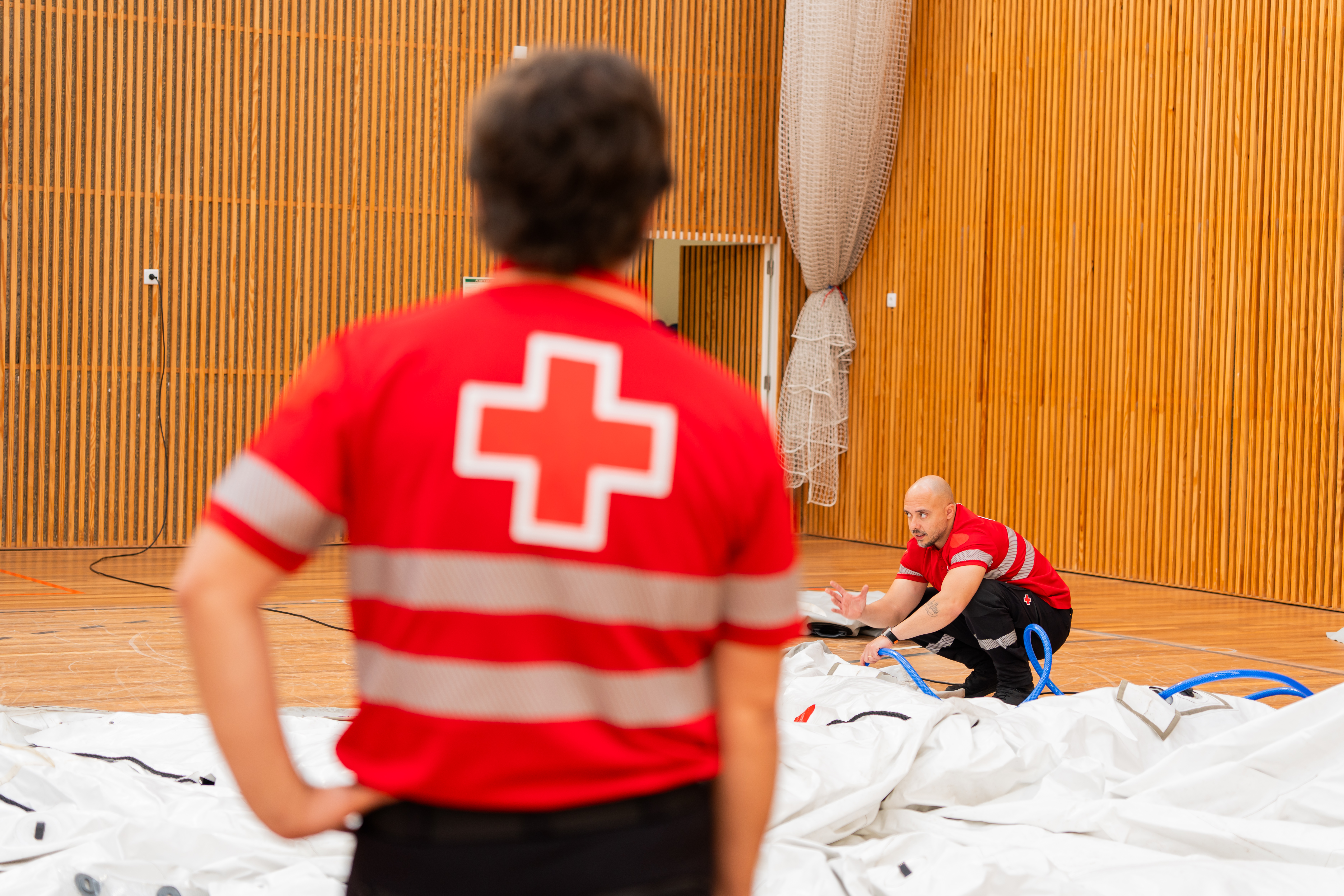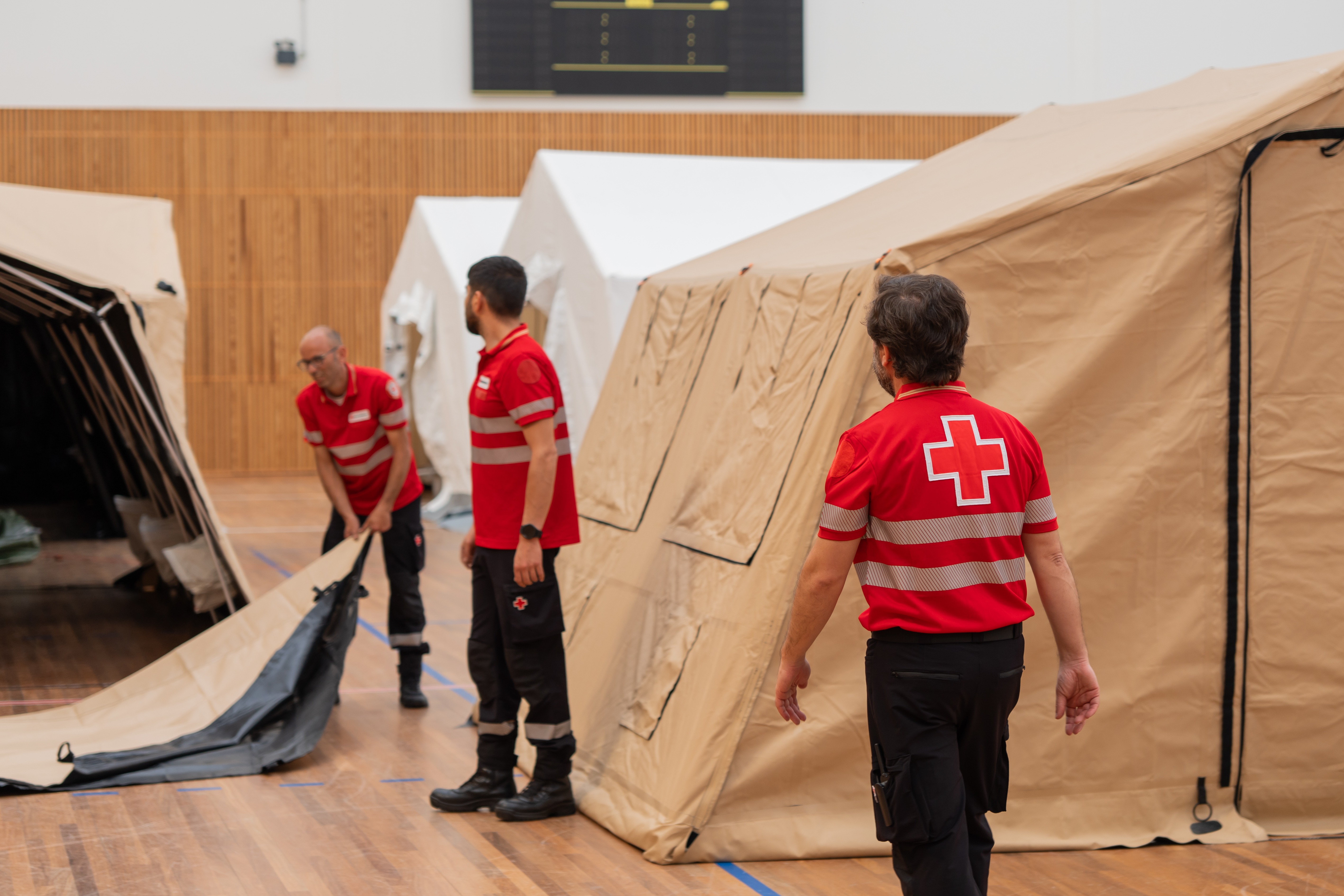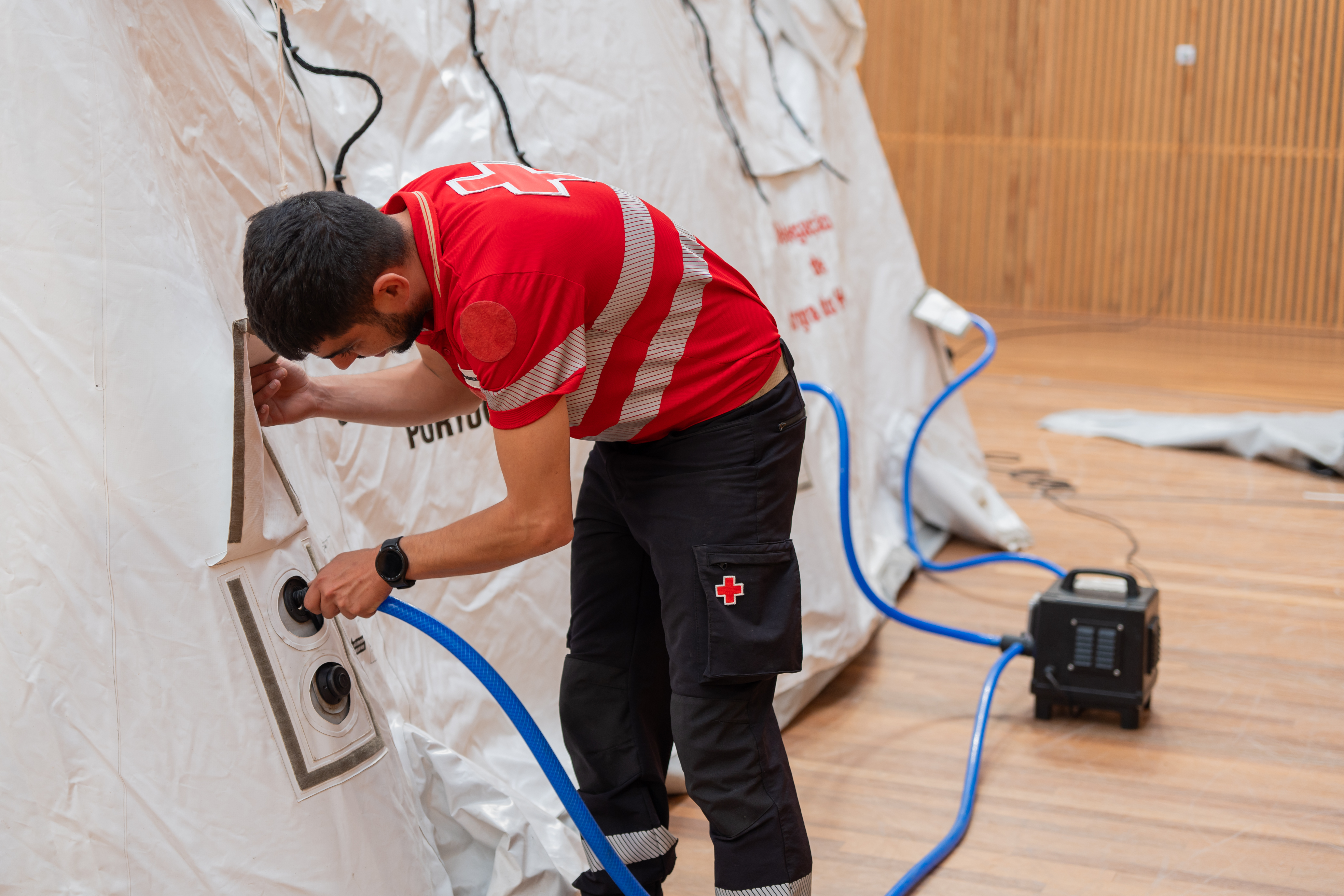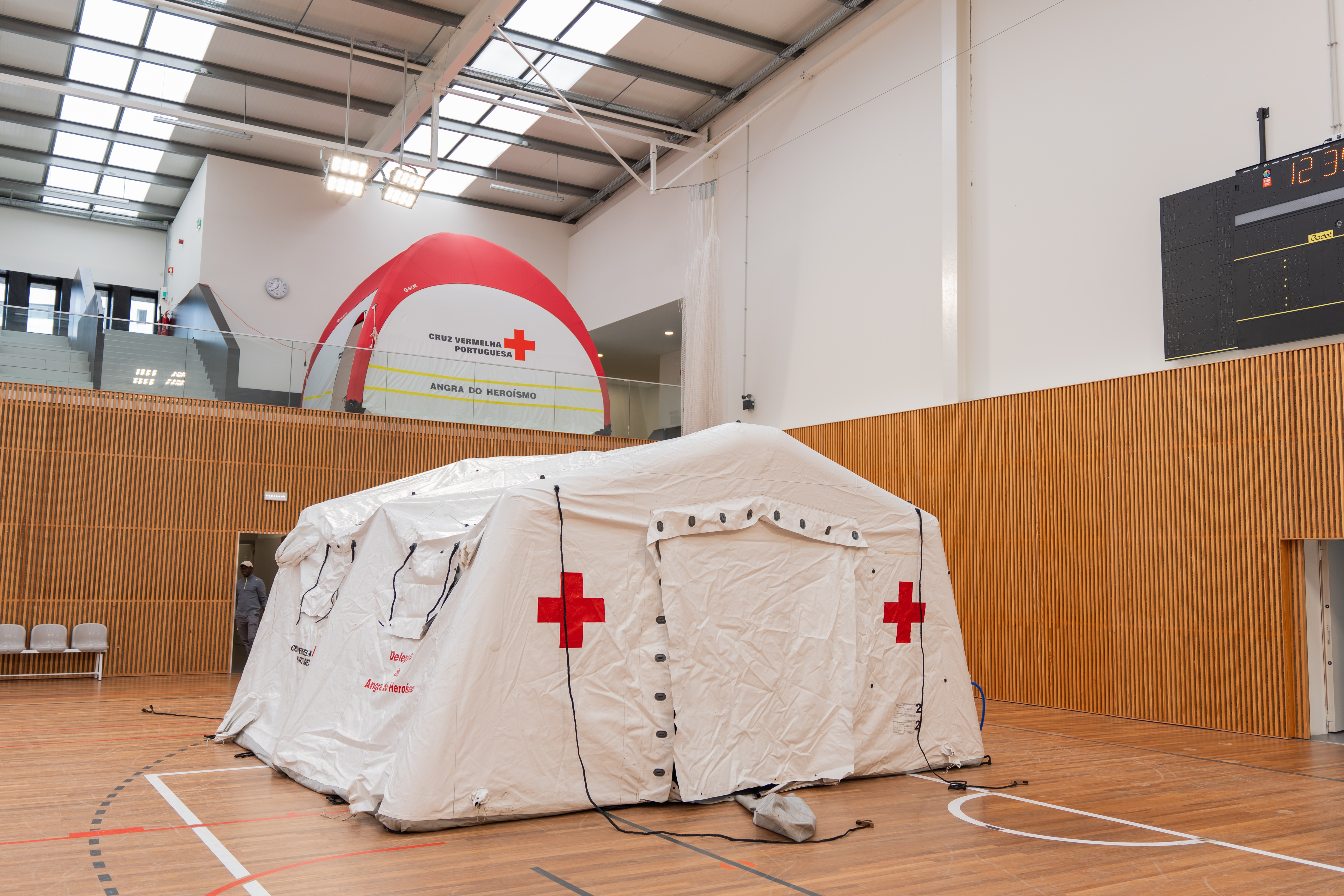 Um total de 20 voluntários da CVP têm estado envolvidos na montagem do PMA, que ficará instalado no Pavilhão Municipal Carlos Silveira, em Ponta Delgada. Esta operação logística, com 12 tendas, garantirá o funcionamento de uma enfermaria completa, assegurando a resposta de saúde regional nos Açores.